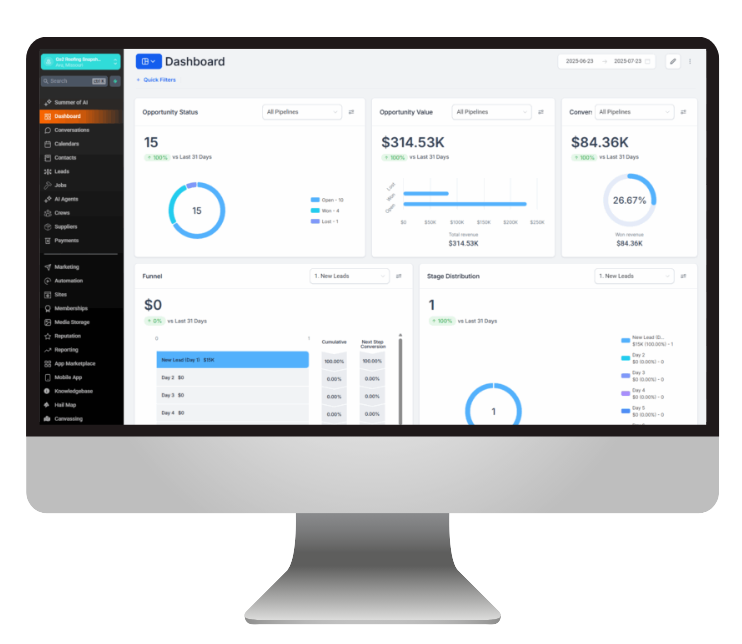 TruePitch CRM (Powered by HighLevel) is an all-in-one roofing CRM solution with cutting-edge AI technologies and infinite integrations so you can cut your tech budget in half while upgrading productivity and speed to lead follow up.